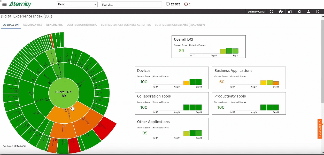 A DEX platform typically used to understand and improve employee experience across endpoints and applications, with visibility and prioritisation for remediation.